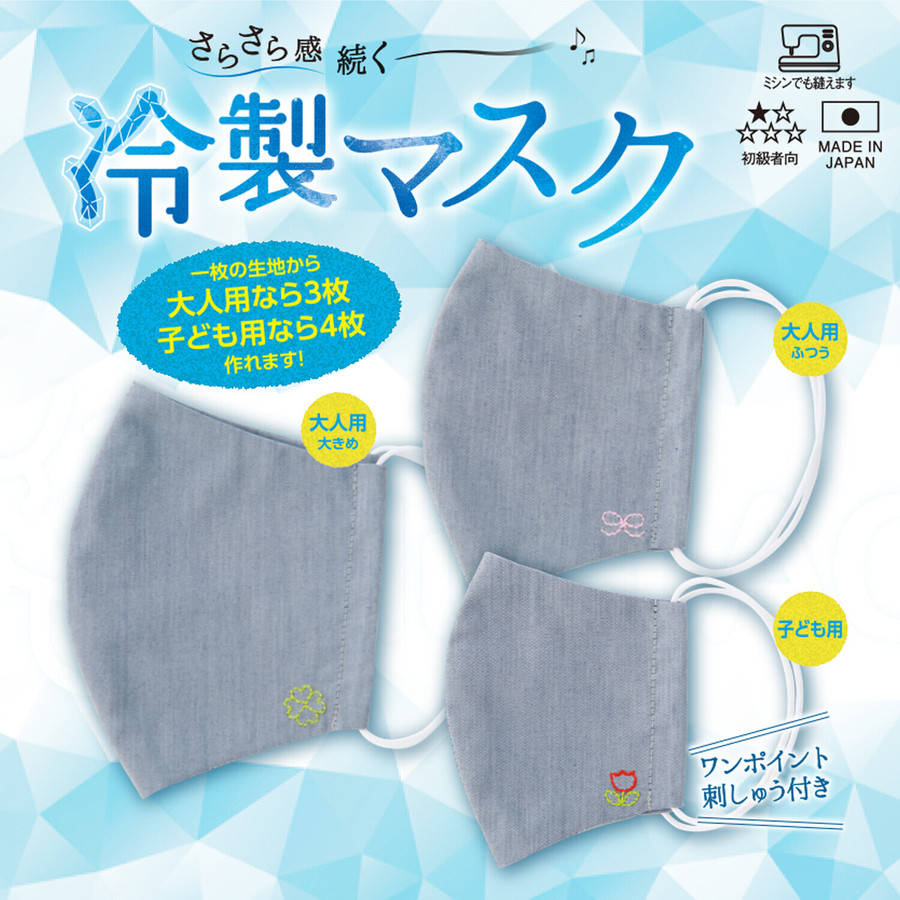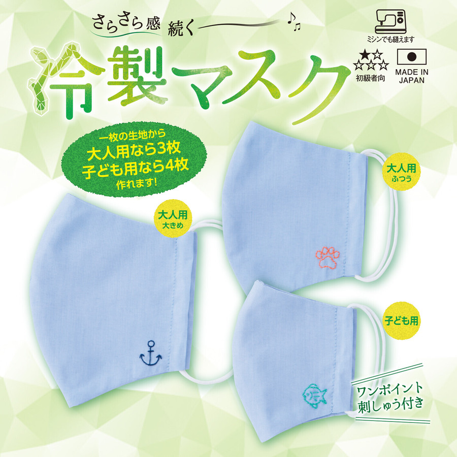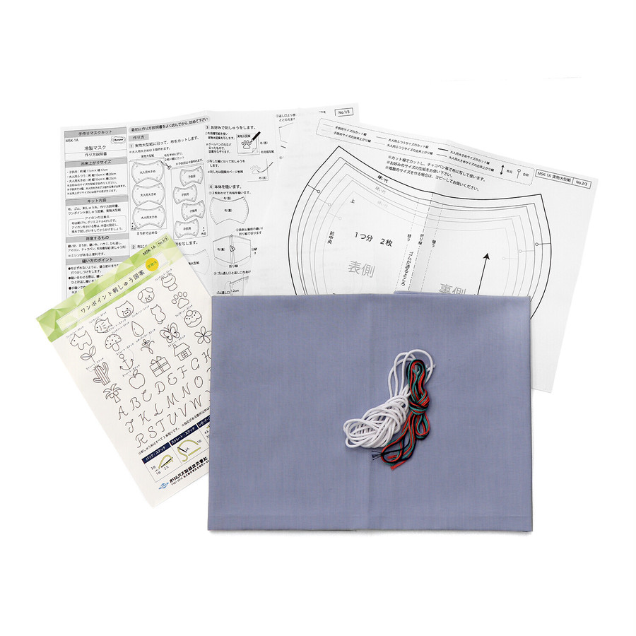 簡単に、手縫いでもミシン縫いでも作れる仕様。 1枚の布から大人用なら3枚、子供用なら4枚作ることができる手作りマスクキットです。