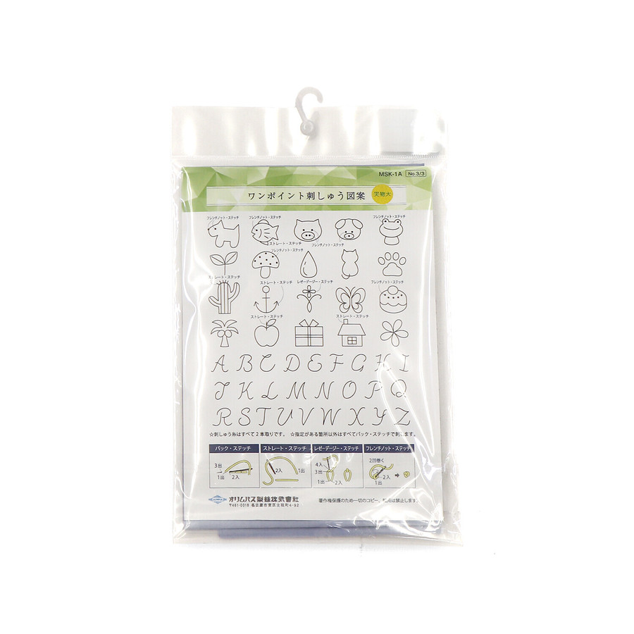 布、ゴム、刺しゅう糸、作り方説明書、ワンポイント刺しゅう図案、実物大型紙